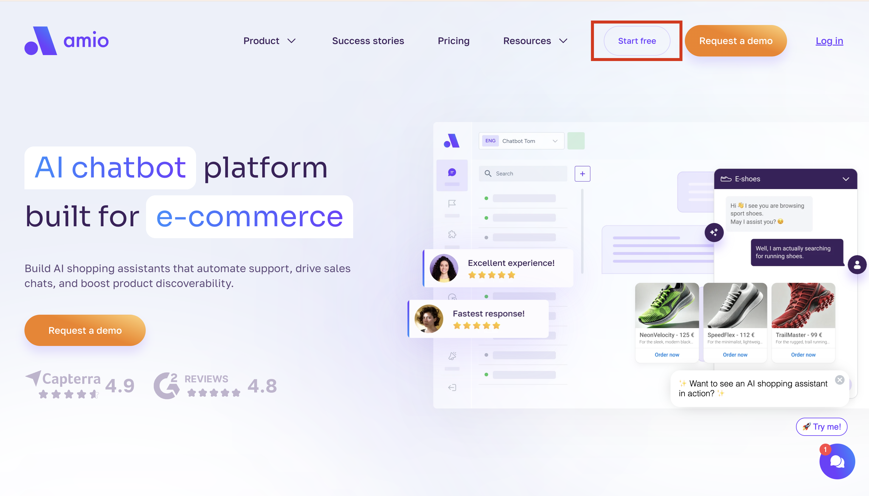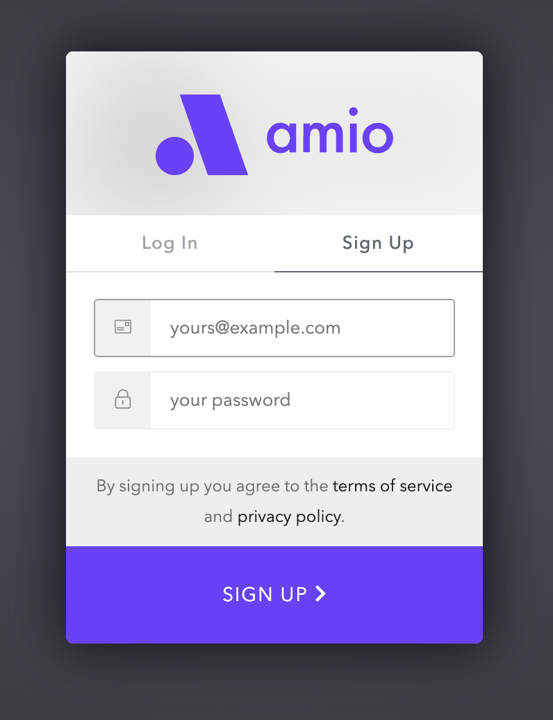 - First you go to Amio website and click "Start free" and Sign up for your new account